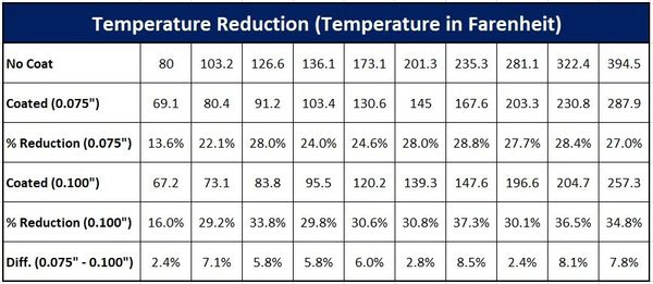 ThermaCoat-400 reduce the surface temperature by 13% to 37% and reduce the amount of energy consumed.